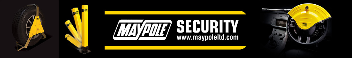 A wide range of Maypole security products including: steering wheel locks, van door locks, hitchlocks, wheel clamps, parking posts and locking wheel bolts.