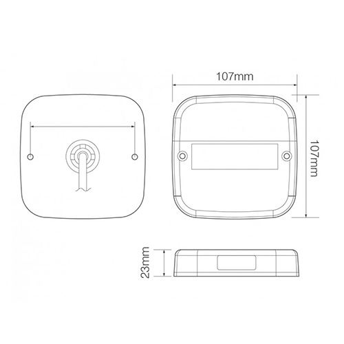 - 107mm x 107mm x 23mm