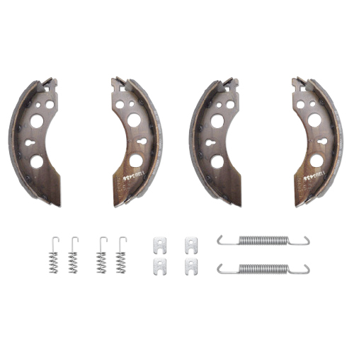 - 4 brake shoes, 2 long tensioning brake shoes, 2 short adjuster springs, 4 retaining springs and cover plates
