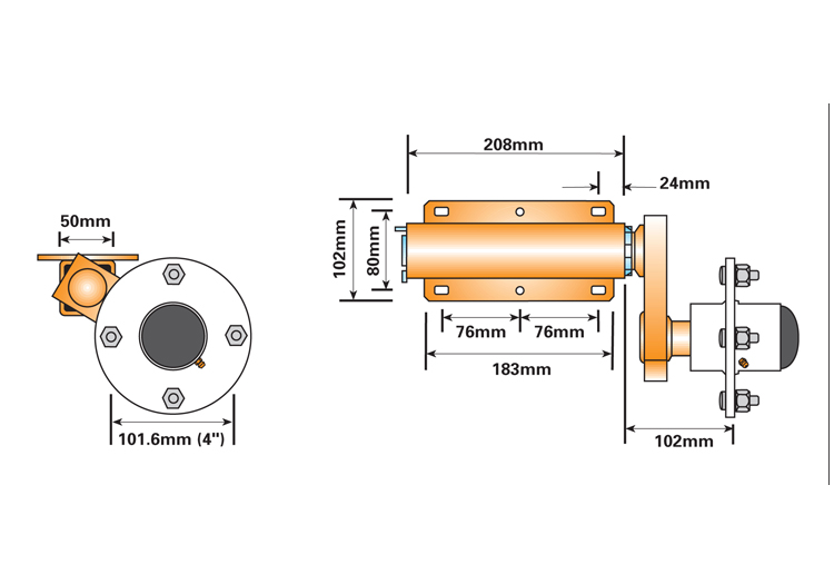 MP211 Pair of 500Kg Suspension Units & Hub. Essential trailer parts. Suitable for use with 8″ and 10″ wheels with 4 studs on 4″ (101.6mm) PCD