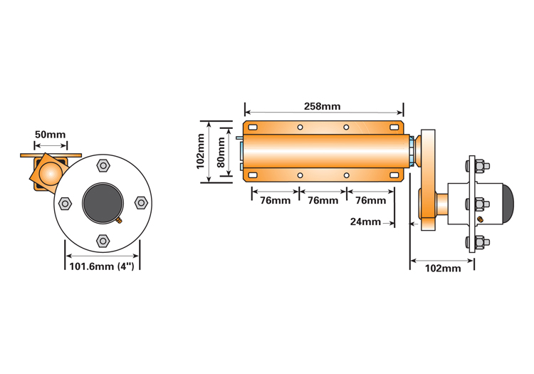 - Suitable for use with 8″ and 10″ wheels with 4 studs on 4″ (101.6mm) PCD