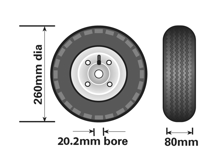 MP2291 260mm Pneumatic Rubber / Steel Wheel Fits MP4375 Jockey Wheel