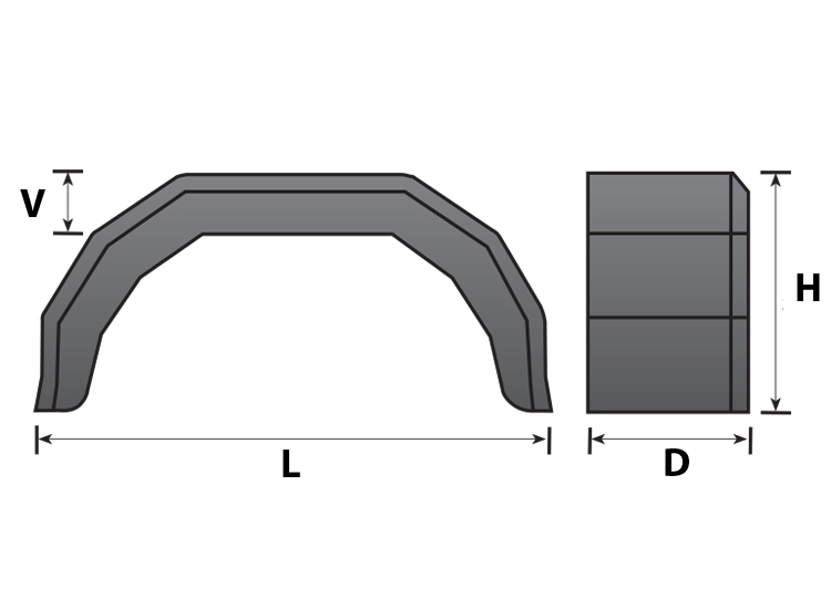 Drawing dimensions L = 610mm, D = 170mm, H = 240mm, V = 65mm