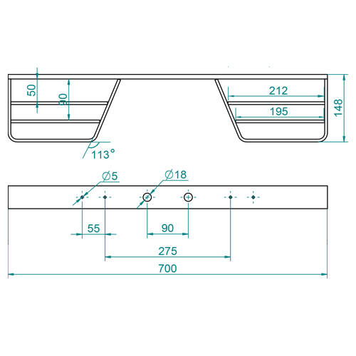 - L 70cm x W 14.3cm x H 5cm