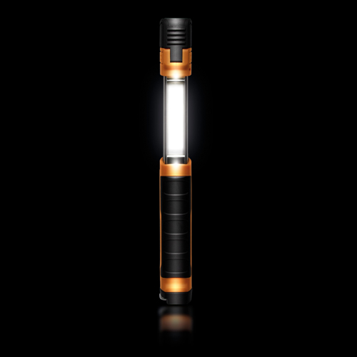 - Powerful 300 lumen 3W COB work light and 250 lumen 1W LED torch