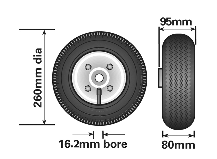 MP2291 260mm Pneumatic Rubber / Steel Wheel Fits MP4375 Jockey Wheel