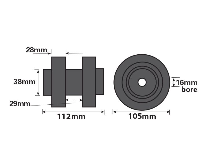 - 112mm W x 105mm D x 16mm Bore Diameter