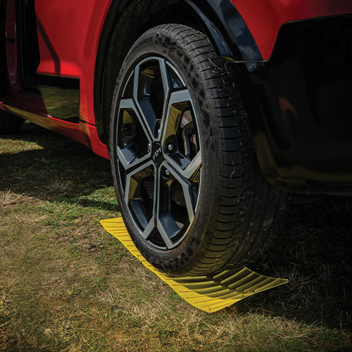 Pair of yellow grip mats that are essential for escaping muddy fields