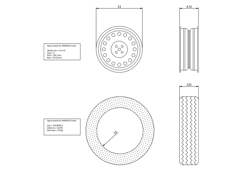 MP68192 135 R13 Wheel & Tyre Fits MP6819 & MP69153 Trailer
