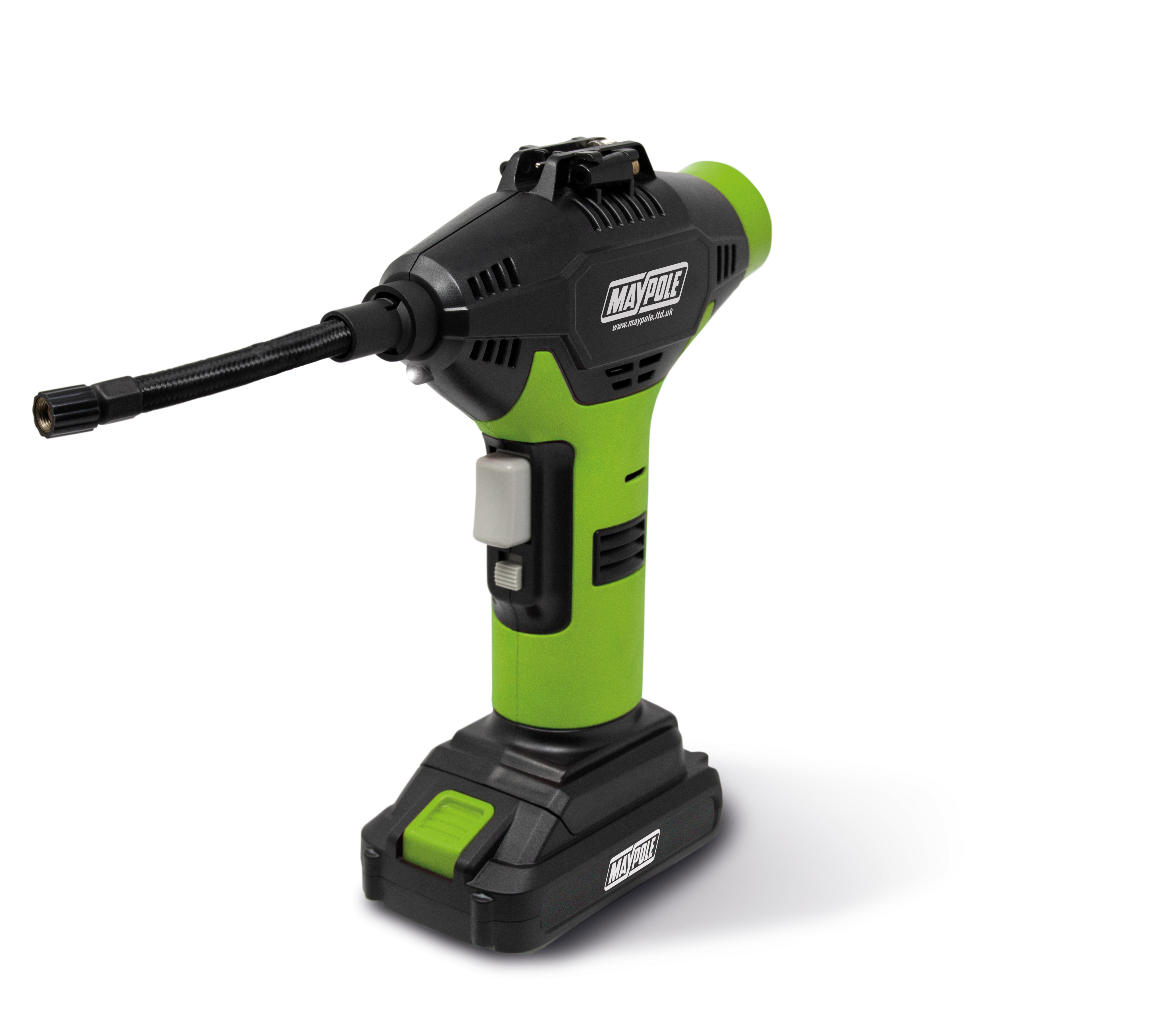 - 12V cordless lithium ion – no cables or drain on car battery