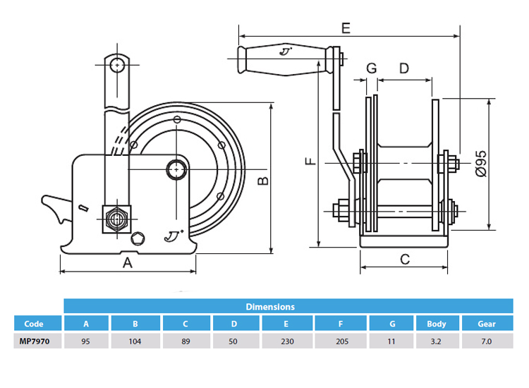 MP7970 Standard Hand Winch 385Kg / 850LB
