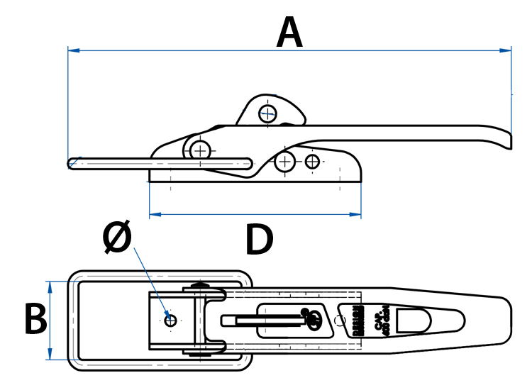 MP81301B 210 x 37mm Padlockable Overcentre Catch