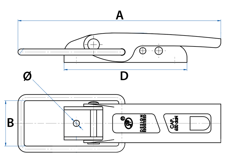 MP81302B 165 x 37mm Standard Overcentre Catch
