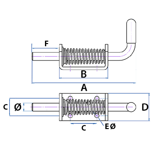 MP81313B Spring Bolt 210mm x 12mm