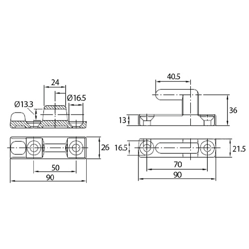 MP8158 16mm Dia. Bolt On Hinge / Gudgeon Pin