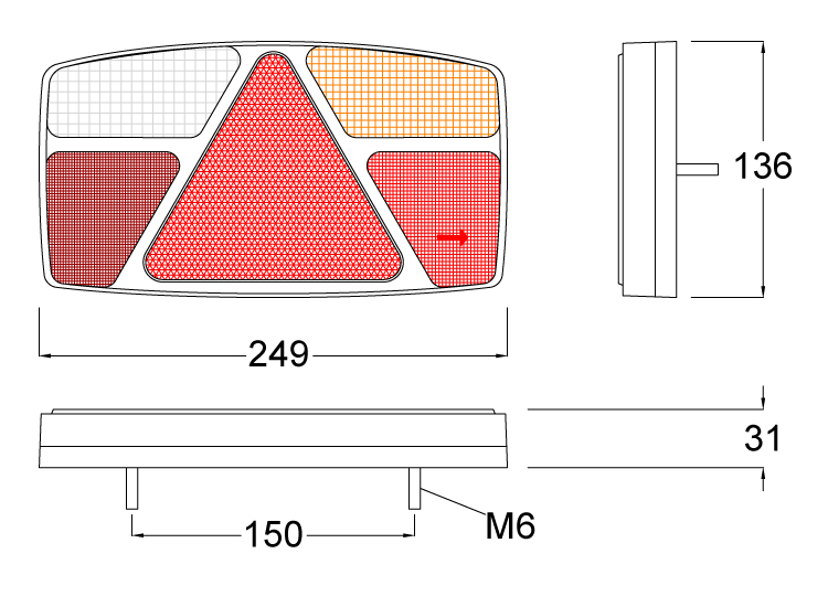 - 6 functions – Stop, tail, indicator, fog, reverse and integral triangle reflector