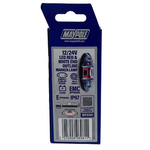 MP8981 WAS 10/30V LED Red/White Outline Marker Lamp Display Packed