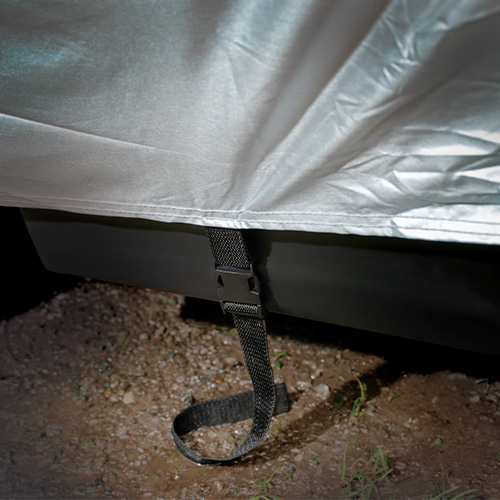 - Pull the cover over the car and fit elasticated hems under front and rear bumpers