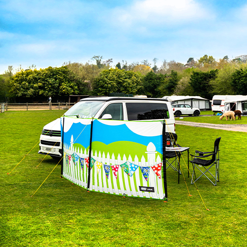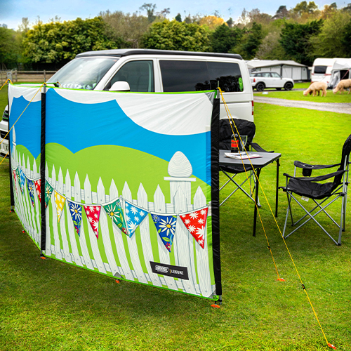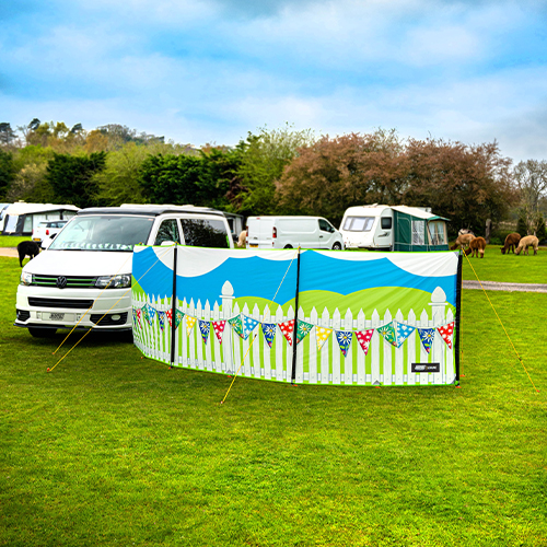 Bring the summer to your campsite in any weather with this fun, bold & colourful windbreak