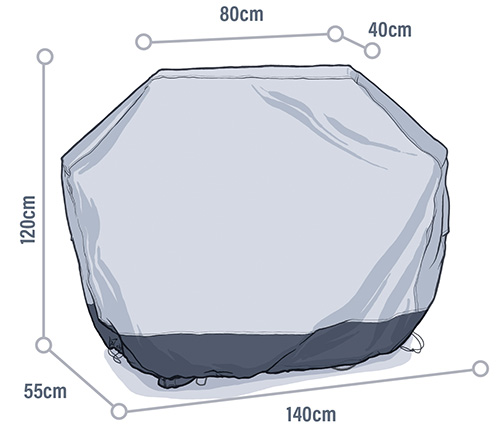 - Cover dimensions 140cm Width x 120cm Height x 55cm Depth