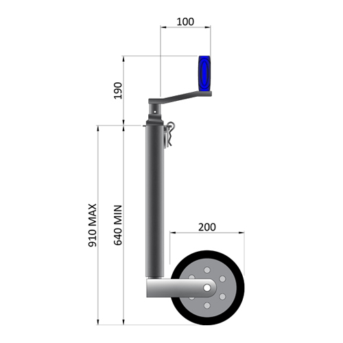 • MP9721 48mm smooth 500kg heavy duty jockey wheel suitable for professional trailer applications up to 500kg static nose weight