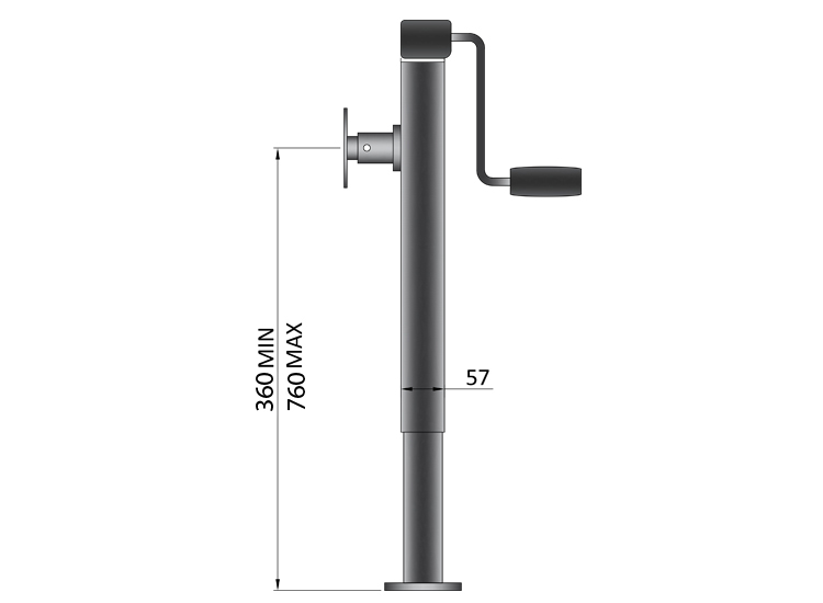 MP9785 1265kg 360-760mm heavy duty side wind telescopic swivel jack used for assisting the safe and easy lifting of your trailer
