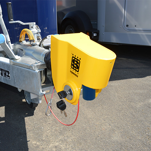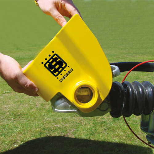- The robust yellow steel casing with anti-saw features covers the fixing bolts of the hitch to protect it from being stolen