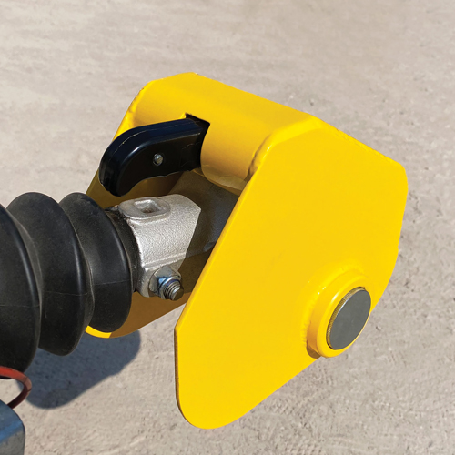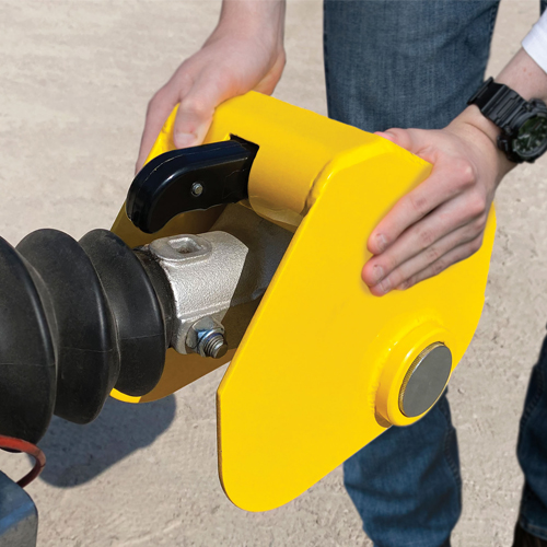 - The robust yellow steel casing with anti-saw features covers the fixing bolts of the hitch and immobilises the handle to prevent theft